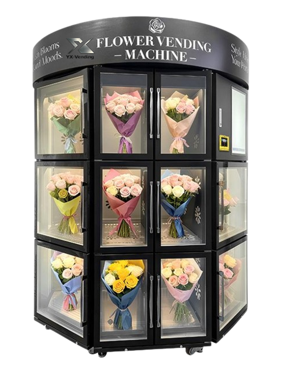 Cash, Nayax Card Reader, Customized Integration High-end metal panels paired with high-transparency anti-fog glass.